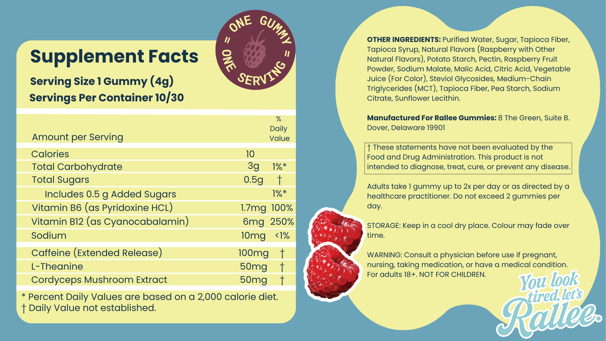 Rallee is generally safe for healthy adults. If you are pregnant, nursing, have any health conditions, or take medications, consult your healthcare provider before use. We do not recommend Rallee for children, or anyone that is sensitive to caffeine.